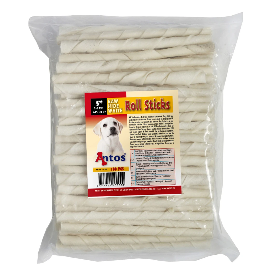 Antos Rawhide White Roll Sticks voor de hond zijn heerlijke en natuurlijke kauwsnacks voor je hond. Deze snacks worden gemaakt van taaie gedroogde buffelhuid en zijn volledig verteerbaar.