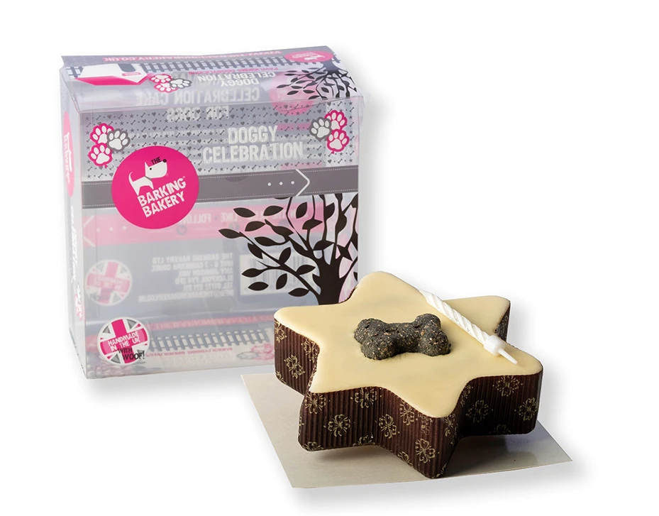 De Barking Bakery Pawty Celebration Hondentaart is een heerlijke taart voor de hond. De taart is belegd met yoghurt en omgeven met knapperige botvormige koekjes. Een ware feest voor elke hond!