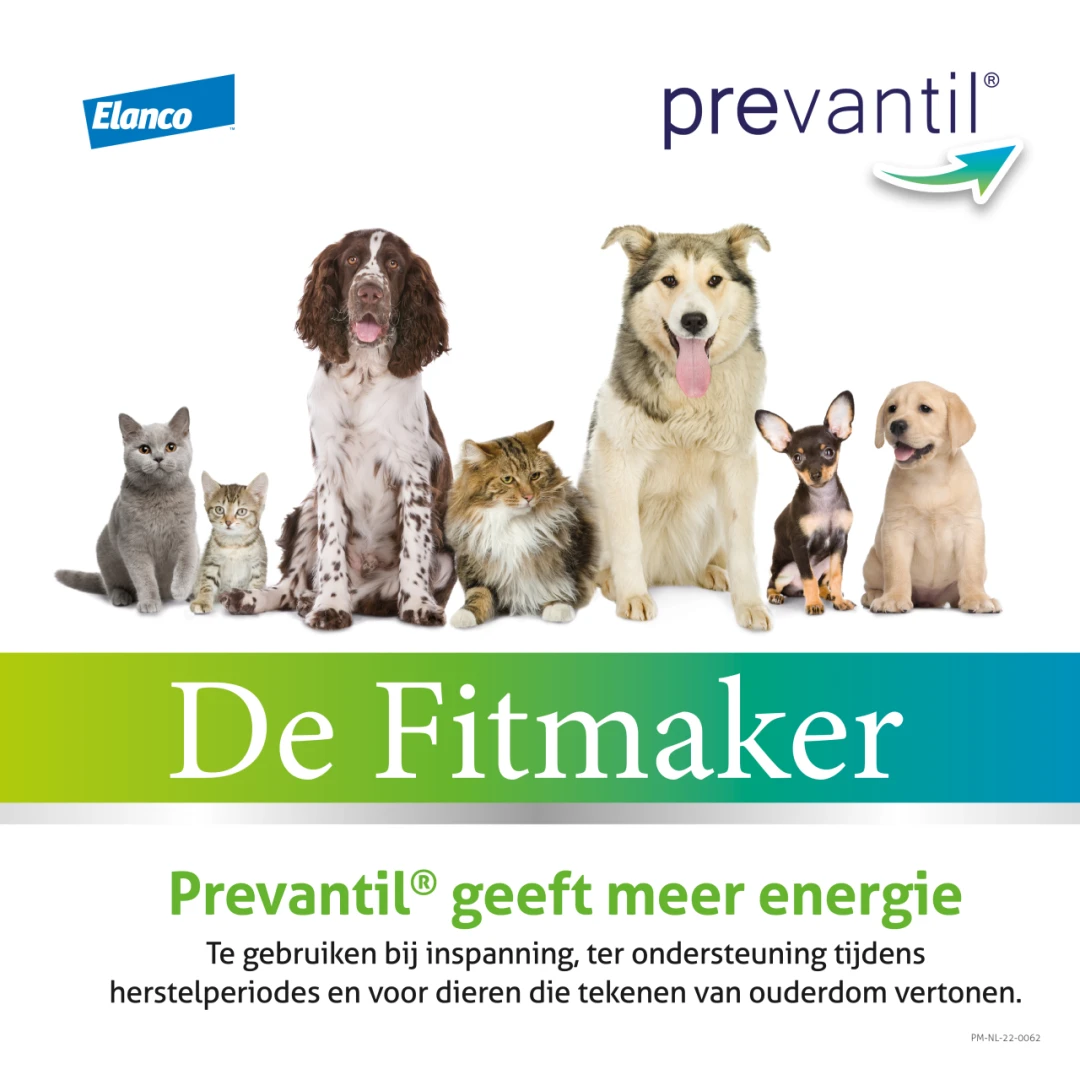 Prevantil is een aanvullend diervoer met moutsmaak voor hond en kat met een extract van cactusvijg. Het geeft meer energie en is te gebruiken bij spanning en inspanning, ter ondersteuning tijdens herstelperiodes en voor dieren die tekenen van ouderdom vertonen.