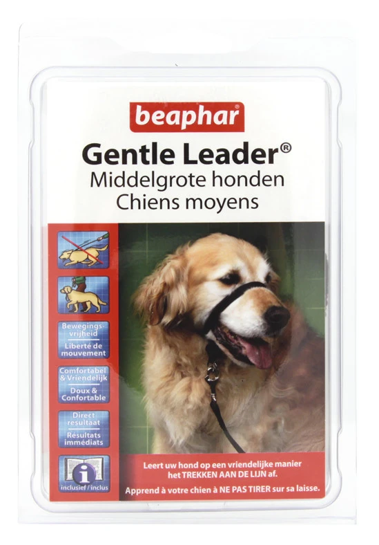De Gentle Leader® is een unieke hoofdhalsband die aanbevolen wordt door vele dierenartsen en hondengedragsdeskundigen. Dit is een nieuwe methode om uw hond op een vriendelijke manier te corrigeren, af te richten en onder controle te houden. Waarom zou u kiezen voor de Gentle Leader®? Alle honden trekken instinctief aan een gewone hondenriem. Door de tegendruk van de riem gaat de hond steeds meer trekken.