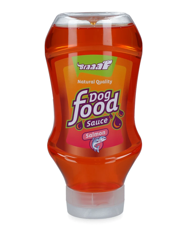 Braaaf Dog food Sauce zalmolie, een natuurlijk en smakelijk product. De Dog food Sauce bevat vitamines en mineralen en is een perfecte aanvulling voor een kieskeurige hond. Verder draagt zalmolie door de essentiële omega 3-vetzuren bij aan een gezonde huid en vacht.