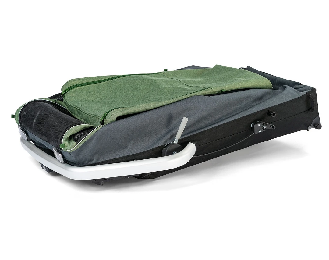 - Dankzij het telescopische vouwsysteem, berg je de fietskar na gebruik eenvoudig op.