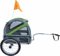 De DoggyRide hondenfietskar Mini 20 is een fietskar voor kleine tot middelgrote honden. De kwalitatief hoogwaardige fietskar heeft een aluminium frame en is uitgevoerd met een groen/grijs bovendoek. De fietskar is plat op te vouwen en de zitruimte kan worden gebruikt als tent of bench. Hierdoor is deze fietskar zeer geschikt voor op vakantie.