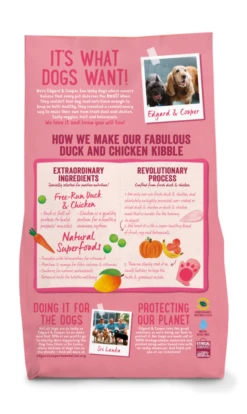 In Edgard & Cooper hondenvoer Puppy scharreleend en scharrelkip wordt enkel verse scharreleend en verse scharrelkip gebruikt en absoluut geen bewerkte, overgare of gedroogde eend en kip of meel van eend of kip dat moeilijker is voor de buikjes om te verteren. Daarnaast wordt er een supergezonde mix van fruit, groenten en kruiden toegevoegd.