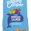 Edgard & Cooper hondenvoer Puppy is een heerlijk, graanvrij recept met verse zalm en kalkoen en speciaal ontwikkeld voor groeiende puppy’s. Zelfs de meest kieskeurige pups zijn fan! De brokjes zijn rijk aan makkelijk te verteren, hoogwaardige eiwitten – dus geen gedroogd of gedehydrateerd vlees – waaronder zalm, een natuurlijke bron van omega 3. We voegen een supergezonde mix van fruit en groenten toe, en lekkere kruiden en botanicals voor een extra boost. Die fantastische blend bakken we langzaam: zo blijft al dat goede perfect bewaard.