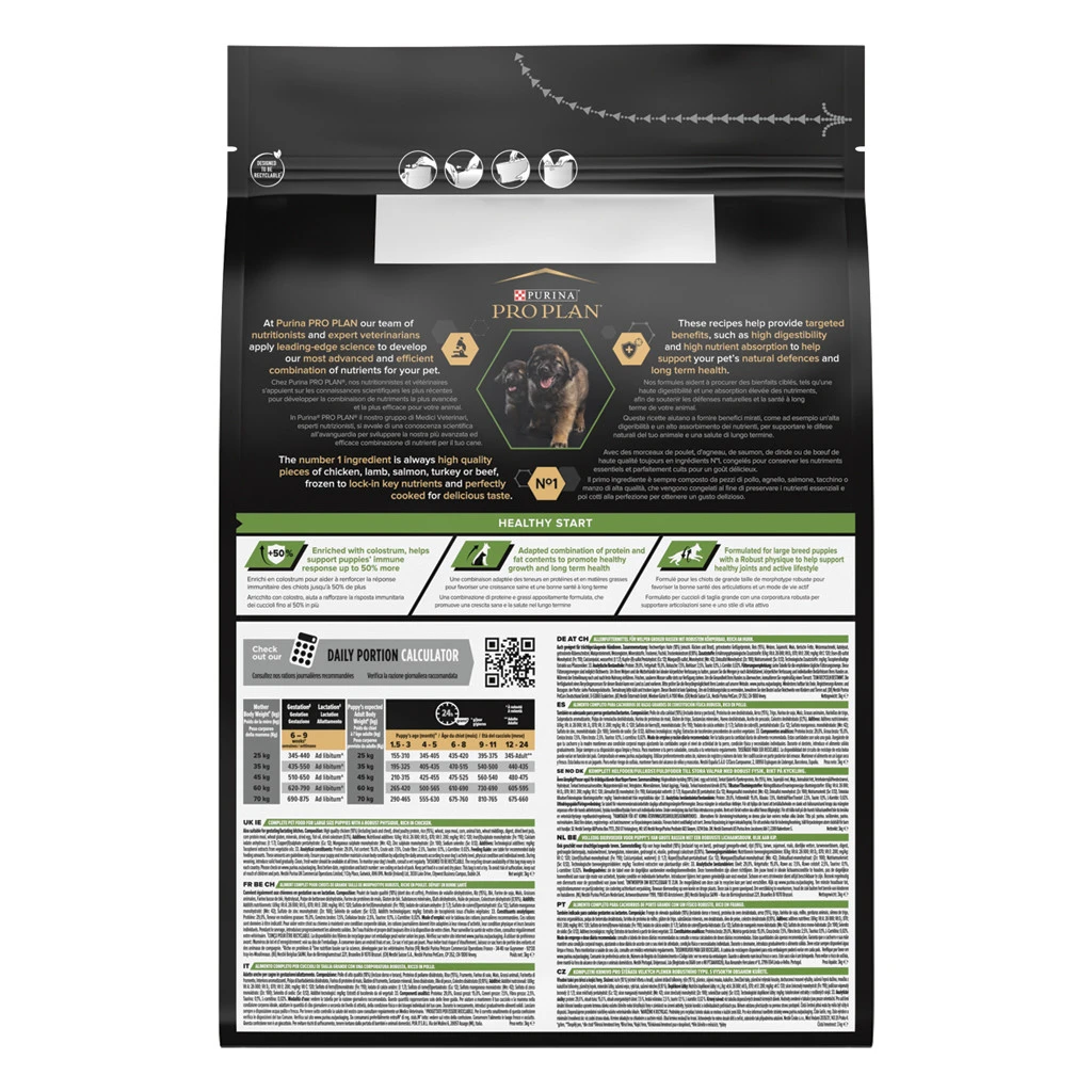 Pro Plan hondenvoer Large Athletic Puppy is volledig hondenvoer voor puppy’s van grote rassen met een hogere energiebehoefte. Met colostrum als speciaal ingrediënt, helpt de natuurlijke afweer van puppy’s te versterken om de dagelijkse uitdaging te bestrijden. Kan gegeven worden tot een leeftijd van 24 maanden.