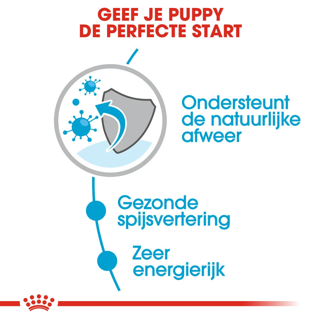 Je pup is gezond, toch? Of zou hij in deze snelle groeifase extra natuurlijke weerstand kunnen gebruiken? Royal Canin Mini Puppy Wet is speciaal ontwikkeld om de groei van je pup met een verwacht volwassen gewicht tot 10 kg te ondersteunen.