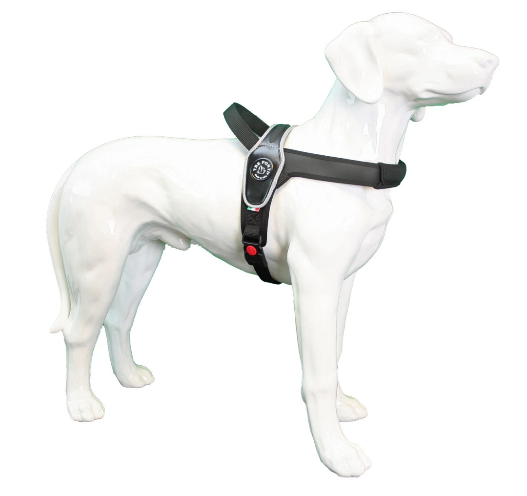 De Primo serie van Tre Ponti is ontwikkeld als ‘allround’ tuig en geschikt voor honden van 10 tot en met 60 kg. Het tuig gaat over het hoofd van de hond en wordt onderin ingesteld en vastgeklikt met een slot sluiting.